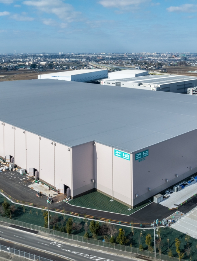 国内物流拠点の再構築として、全国主要都市8カ所に自社運営の物流センターを新設。2025年3月に稼働した幸手DCは延床面積21万㎡と国内最大級の大きさです。拠点の最適配置と機能集約により、物流網の整備、業務のDX化、オペレーションの標準化などの改革を推進しています。