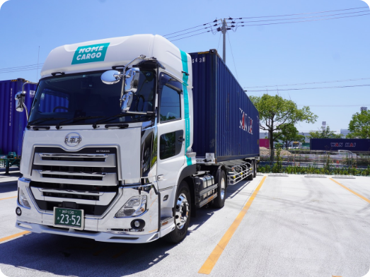 日本各地の主要港で取り扱う輸入コンテナ量は年間15.5万TEUで国内最大規模を誇ります。今後もグローバル展開の拡大に伴いますますの物量増加が予想されます。ドレージ輸送をより効果的に行うため、「株式会社ホームカーゴ」を設立し全国拠点開設や事業の拡大を進めています。