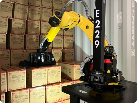 積極的にオペレーションの自動化・機械化を進め、作業現場の品質向上に取り組んでいます。お客様の注文別に仕分けるなど、あらゆるオーダーに対応できるシャトルラックや、コンテナ内での荷下ろし作業の省人化を実現するデバンロボなどのマテハンを導入。人手による負担を大幅に軽減し、安全かつ効率的に作業を自動化します。